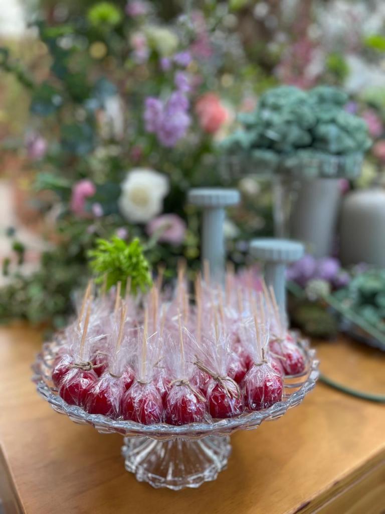 - Doce de maçã do amor (inclui forminha transparente, embalagem de celofane adicional)
